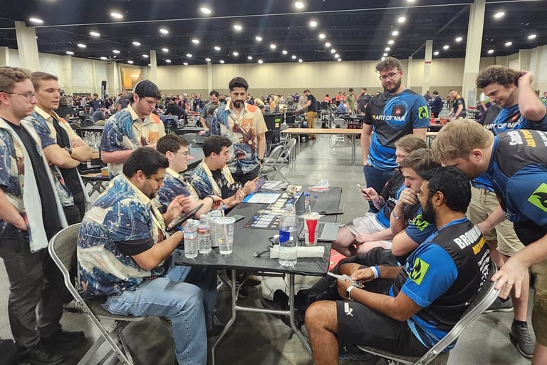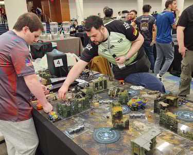 The community is world-wide. You can go anywhere in the world and find a tournament to play in. Picture is Jack playing Tim Schneider (Team Germany member) at the World Championship of Warhammer.
